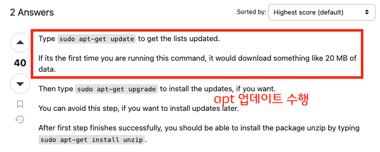 ㅇ 구글링을 통해 apt 업데이트 해결 방법을 모색하였습니다.