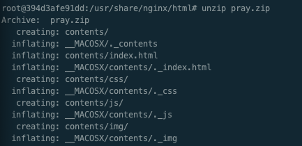 $ docker cp pray.zip webserver:/usr/share/nginx/html/.