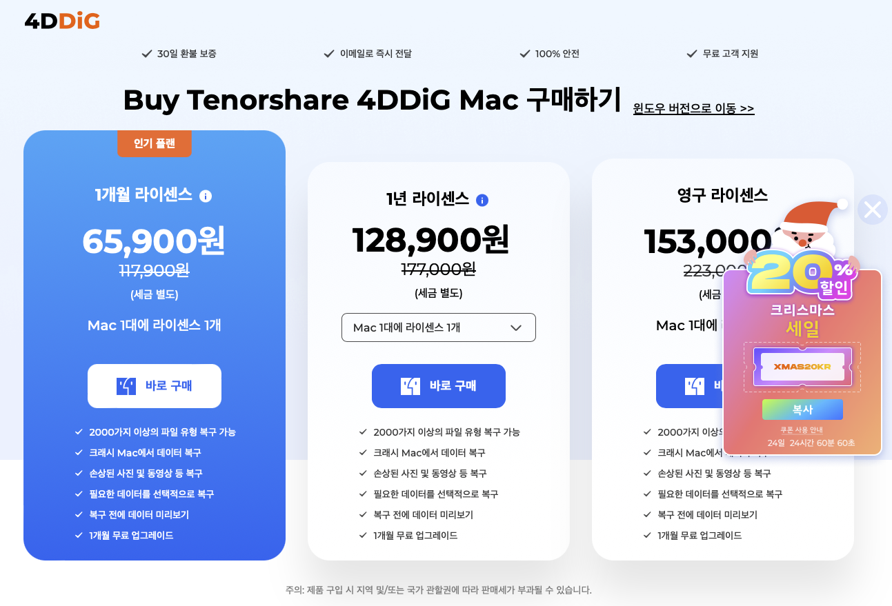 맥 버젼의 경우 복구를 진행하려면 라이센스를 구매 하셔야 합니다.