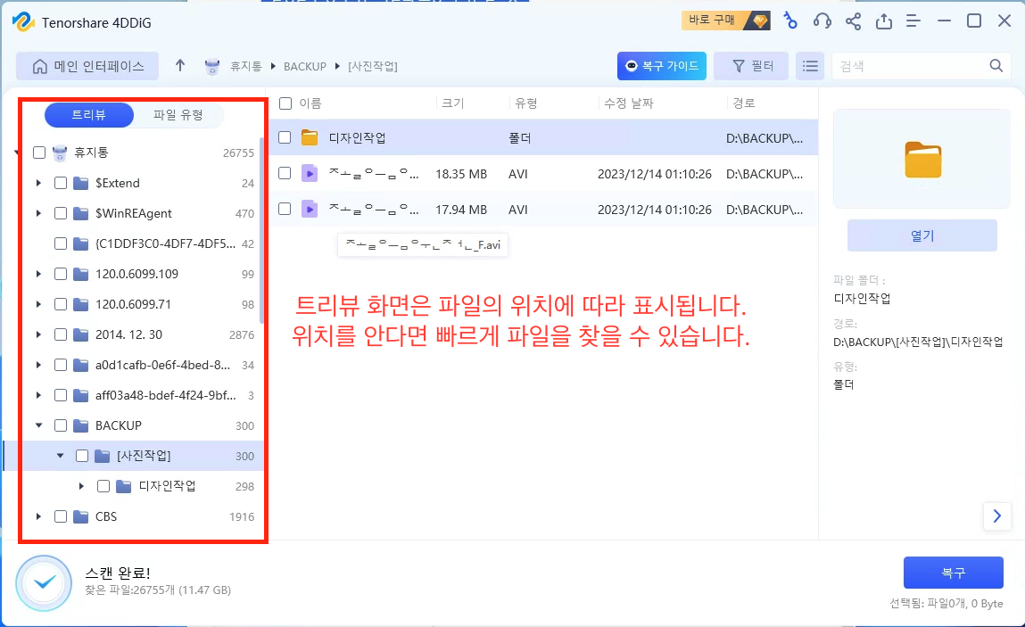 ㅇ 이름이 없더라도 미리보기 기능을 통해 복구할 대상을 찾을 수 있습니다.