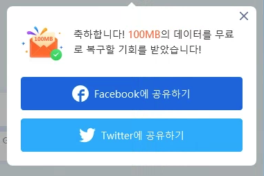 ㅇ SNS에 공유를 하면 무료로 복구를 할 수 있었습니다.
