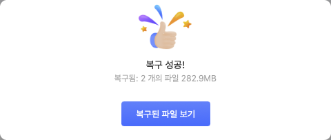 ㅇ 복구 완료되어 복구된 파일 보기를 클릭하였습니다.