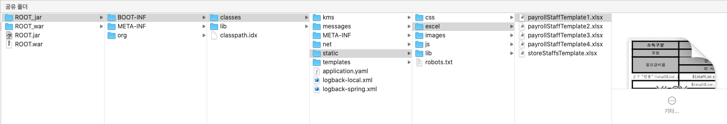 엑셀다운로드을 하고 있었다. JXLS로 만들면서 템플릿 Excel파일의 경로를 지정하였다.