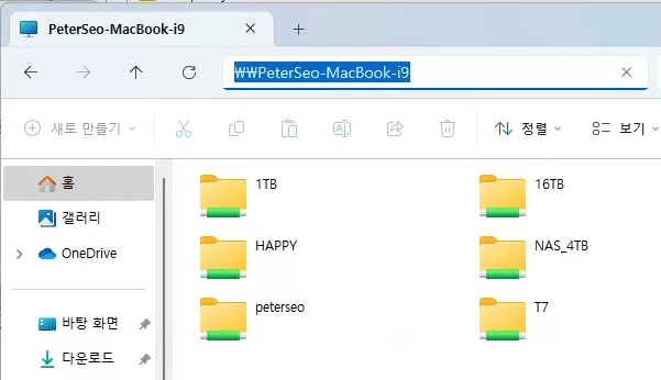 ㅇ 공유폴더(SMB)를 설정하면 윈도우와 맥에서 한글깨짐 문제는 없었습니다.