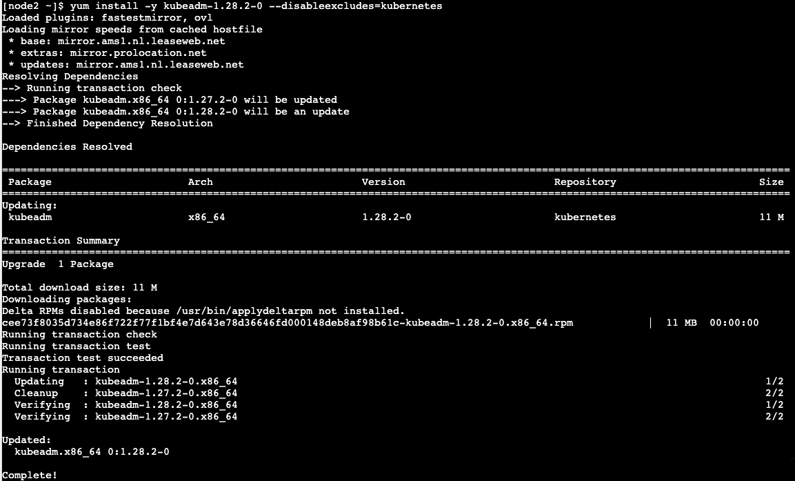 $ yum install -y kubeadm-1.28.2-0 --disableexcludes=kubernetes