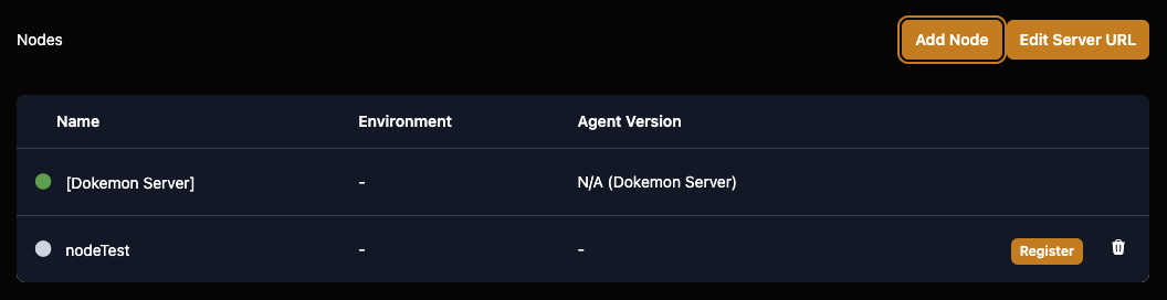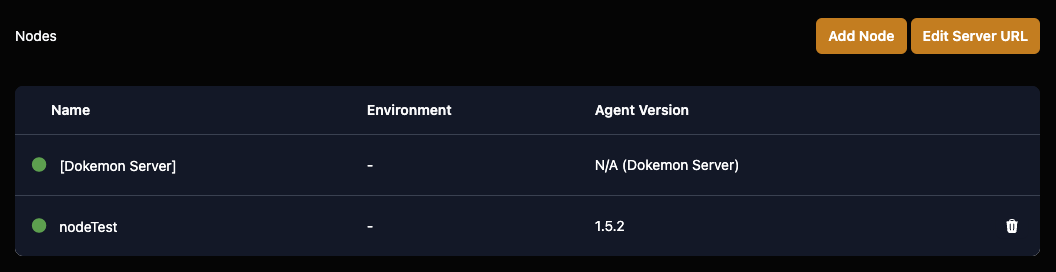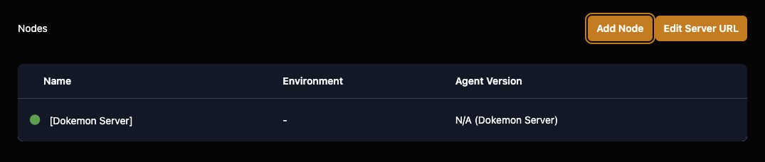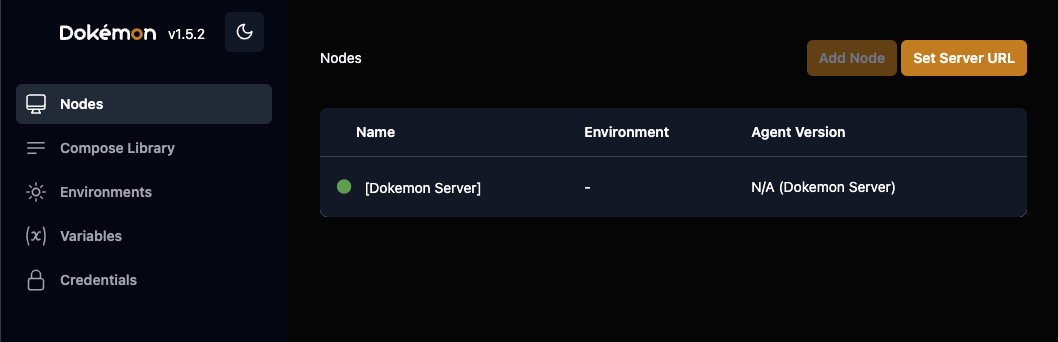 새로운 Dokemon 인스턴스를 설정한 후에는 노드 섹션에서 위 사진의 오른쪽 상단의 Set Server URL버튼을 볼 수 있습니다.