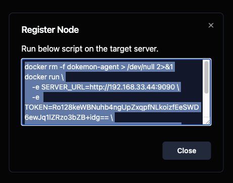 이 버튼을 클릭하면 Dokemon Agent를 설치하기 위한 스크립트가 생성됩니다.