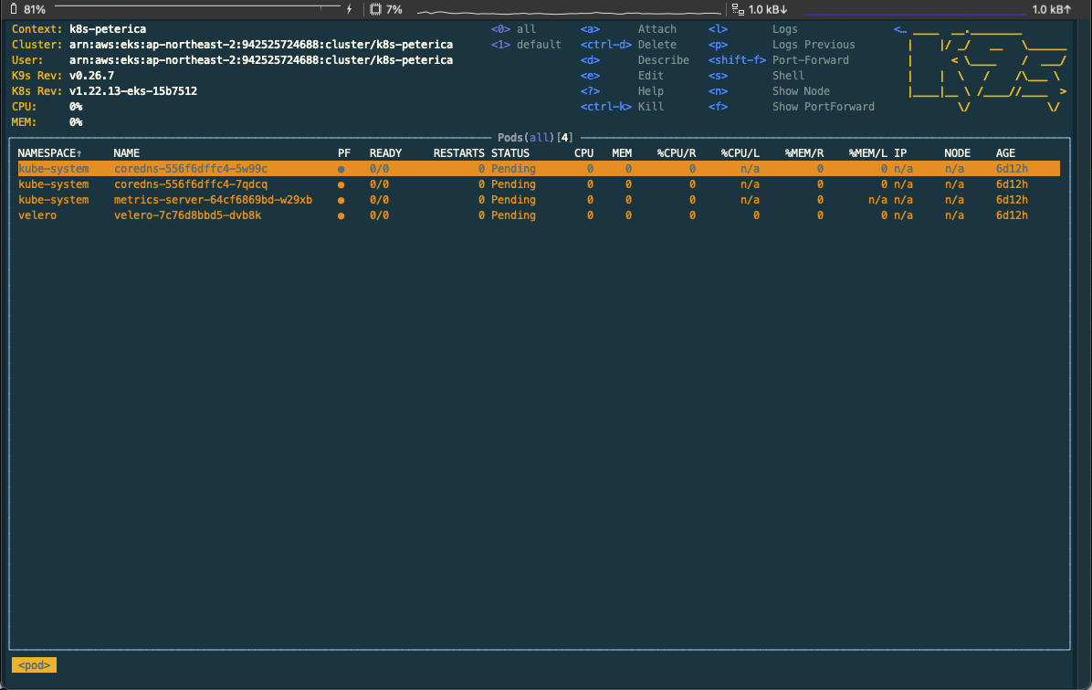 K9s는 Kubernetes 작업을 정말 쉽고 빠르고 안전하게 만들어주는 오픈 소스 명령줄 도구이다. 터미널 기반으로 UI를 통해 kubectl 명령어를 입력하지 않아도 직관적으로 작업을 수행할 수 있다. UI를 통해 kubernetes의 리소스를 생성, 업데이트, 로깅하고 제거할 수 있습니다.