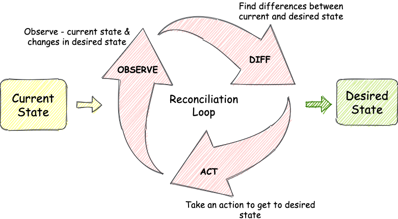 쿠버네티스는 파드들을 관리하는 컨트롤러가 있다. 컨트롤러 관리자는 선언적 요구사항, desired state에 맞추기 위해 클러스터를 모니터링하고 이벤드에 응답하여 조치를 한다.