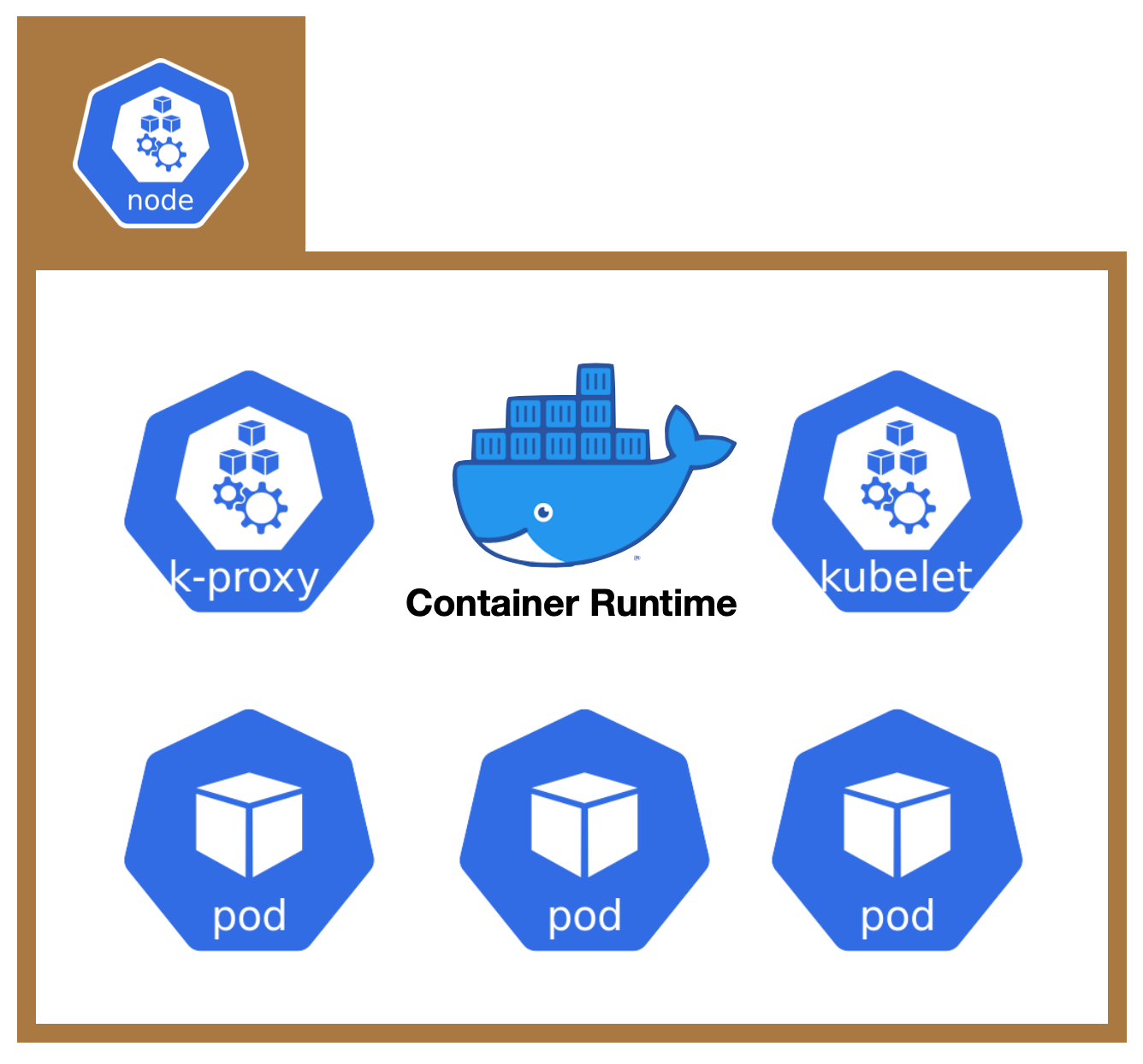 클러스터에 새로운 노드가 추가되면, 노드를 제어하기 위한 구성요소가 자동으로 설치된다. 노드의 주요 구성 요소는 다음과 같다.