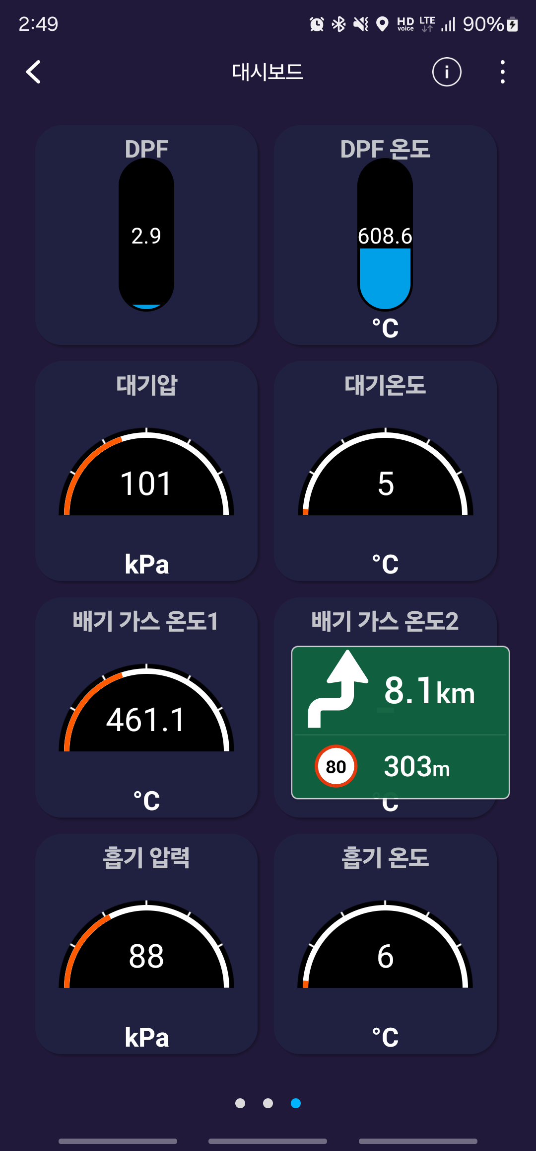 DPF 온도가 300도 적정수준에 올라갔을 때에