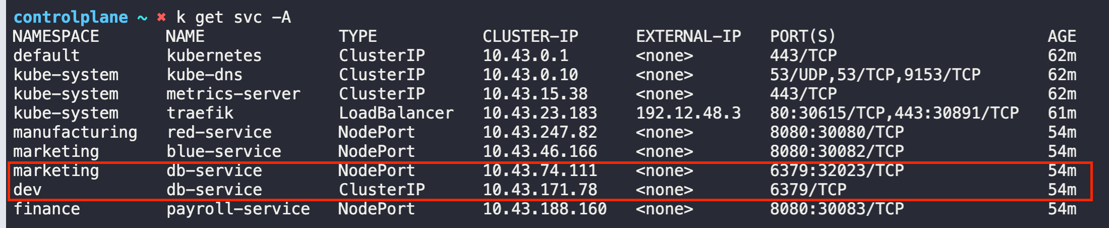 kube-system traefik-84745cf649-d85hz 1/1 Running 0 31m 10.42.0.8 controlplane <none> <none>