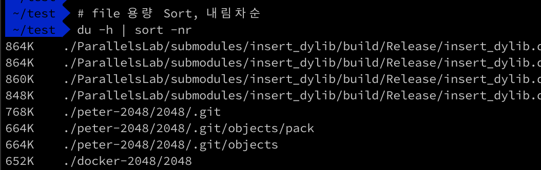 $ du -h -d 1 | sort -n, 오름차순, 작->큰