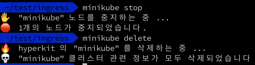 ㅁ 테스트 완료 후 minikube 정리
