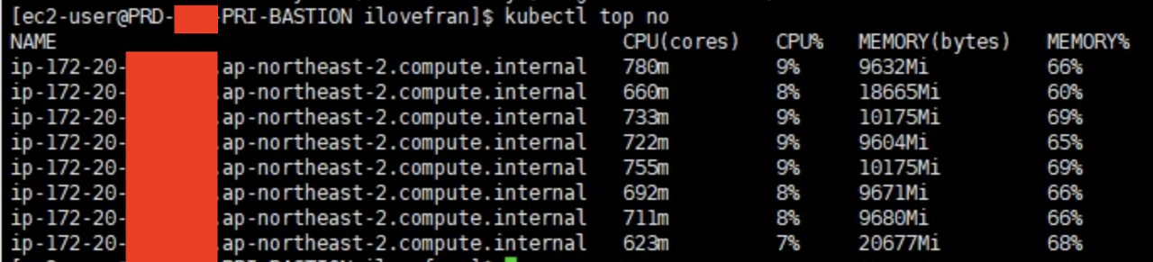 ㅇ kubernetes 환경에서 노드와 자원의 상태를 확인하기 위해 kubectl top 명령어를 자주 사용한다.