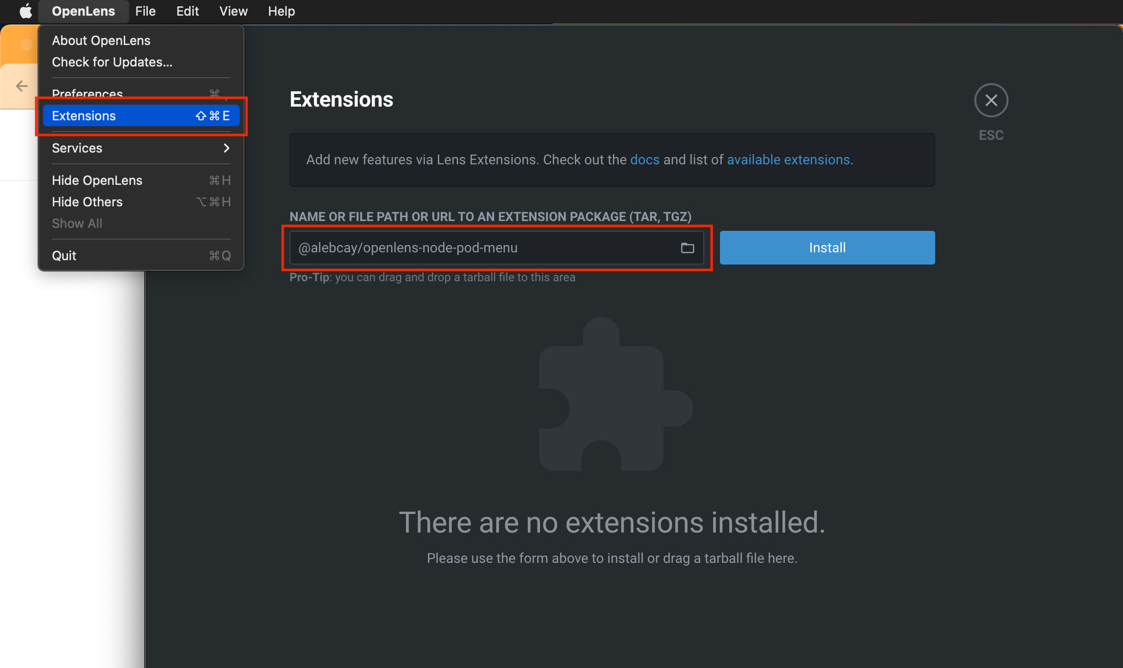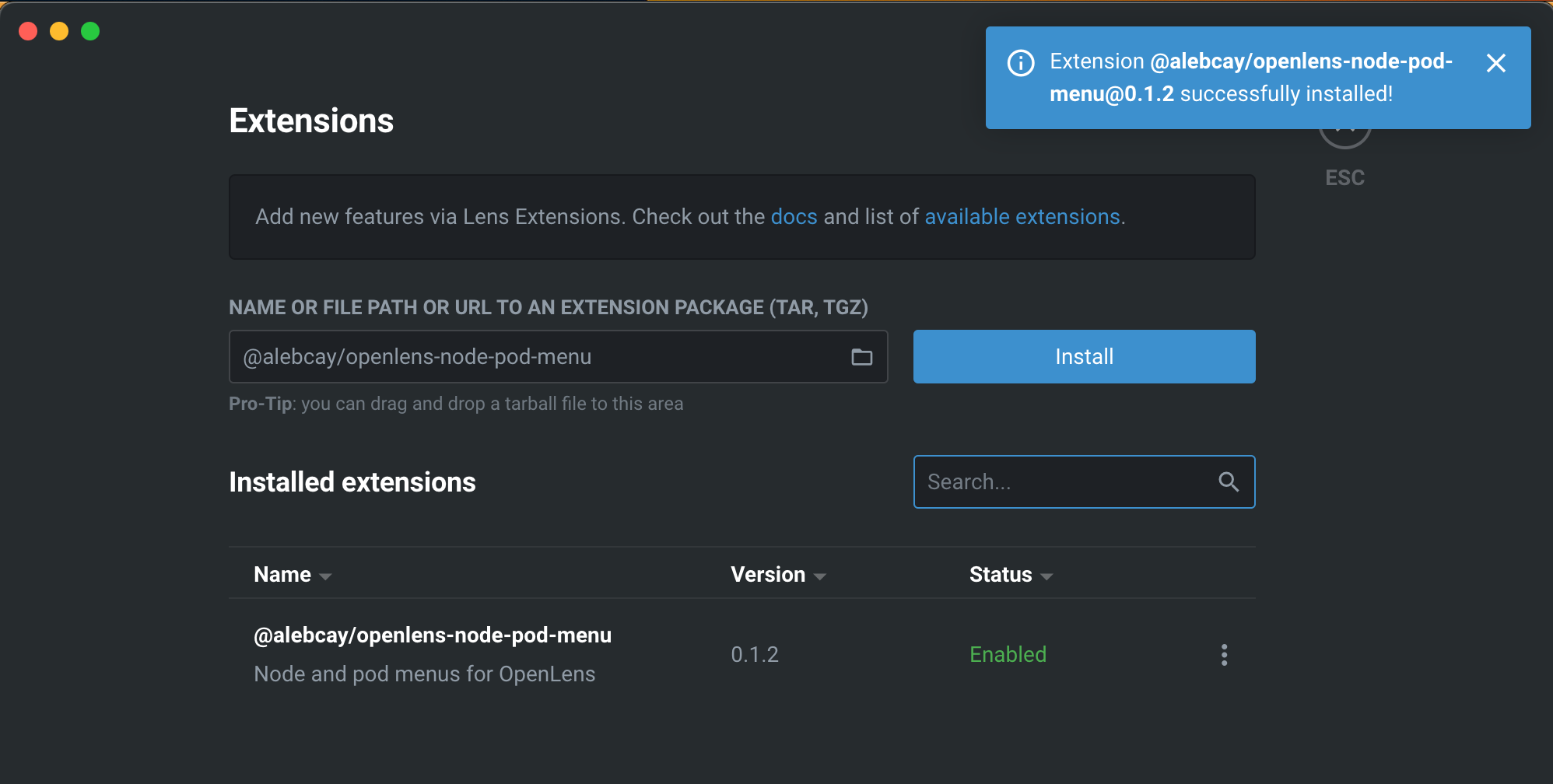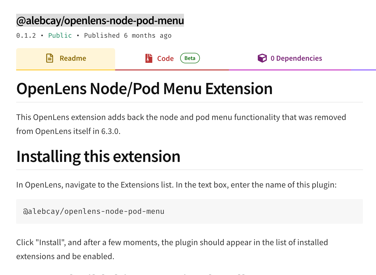이 OpenLens 확장은 6.3.0의 OpenLens 자체에서 제거된 노드 및 Pod 메뉴 기능을 다시 추가합니다.
