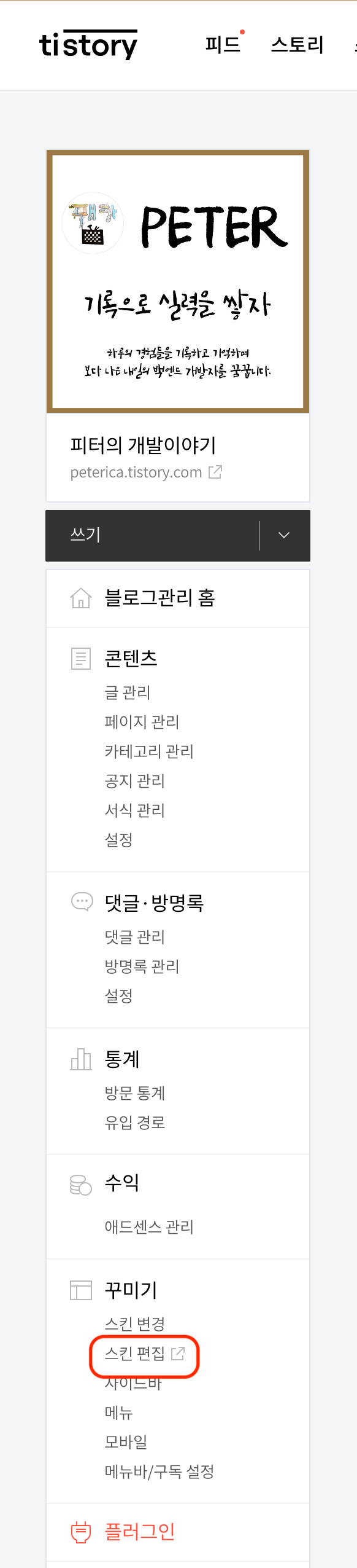 ㅇ 티스토리 > 꾸미기 > 스킨편집 이동