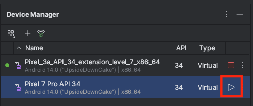 ㅇ Device Manager에서 Start 버튼을 클릭한다.