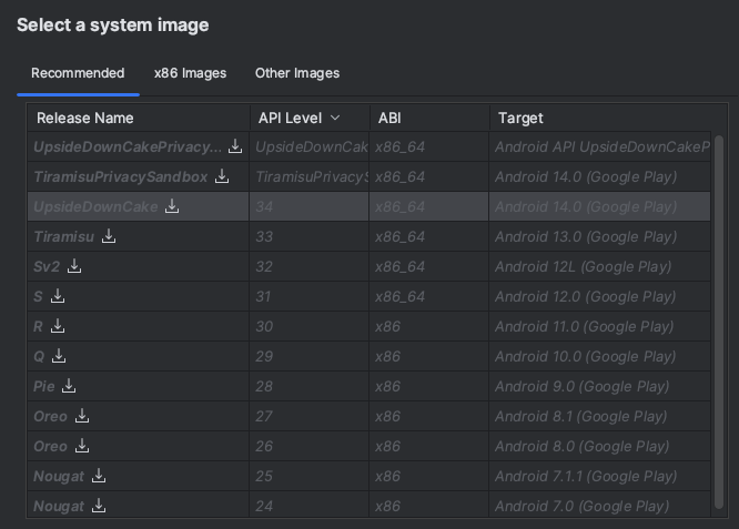 ㅇ 안드로이드 14, System Image를 선택하였다.