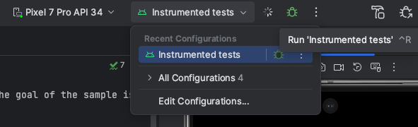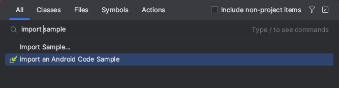 ㅇ Shift 키 두번, import sample 검색하여 import an Android Code sample를 선택