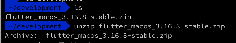 ㅇ ~/development/flutter에 SDK 파일이 확인된다면, SDK 설치는 완료되었다.