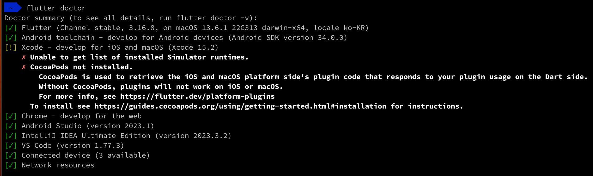 [✓] Flutter (Channel stable, 3.16.8, on macOS 13.6.1 22G313 darwin-x64, locale ko-KR)