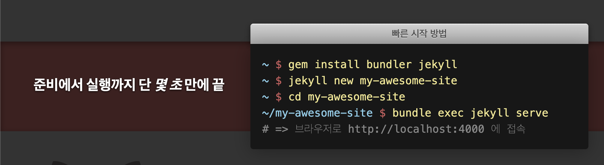 ㅇ Jekyll 설치 후 빠른 실행을 수행하였다.