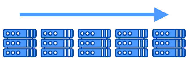 기존의 서버와 같은 서버를 양적으로 확장하는 방법입니다. 비교적 단순한 작업을 동시 병렬적으로 수행할 경우 유리하다. 하나의 장비에서 처리하던 일을 여러 장비로 나눠서 처리할 수 있도록 설계하여 수평적 확장이 가능합니다. 반대로 서버의 수를 줄여서 비가용된 자원을 아낄 수도 있다. 여러 대가 분산효과가 있어 장애에 유리합니다.