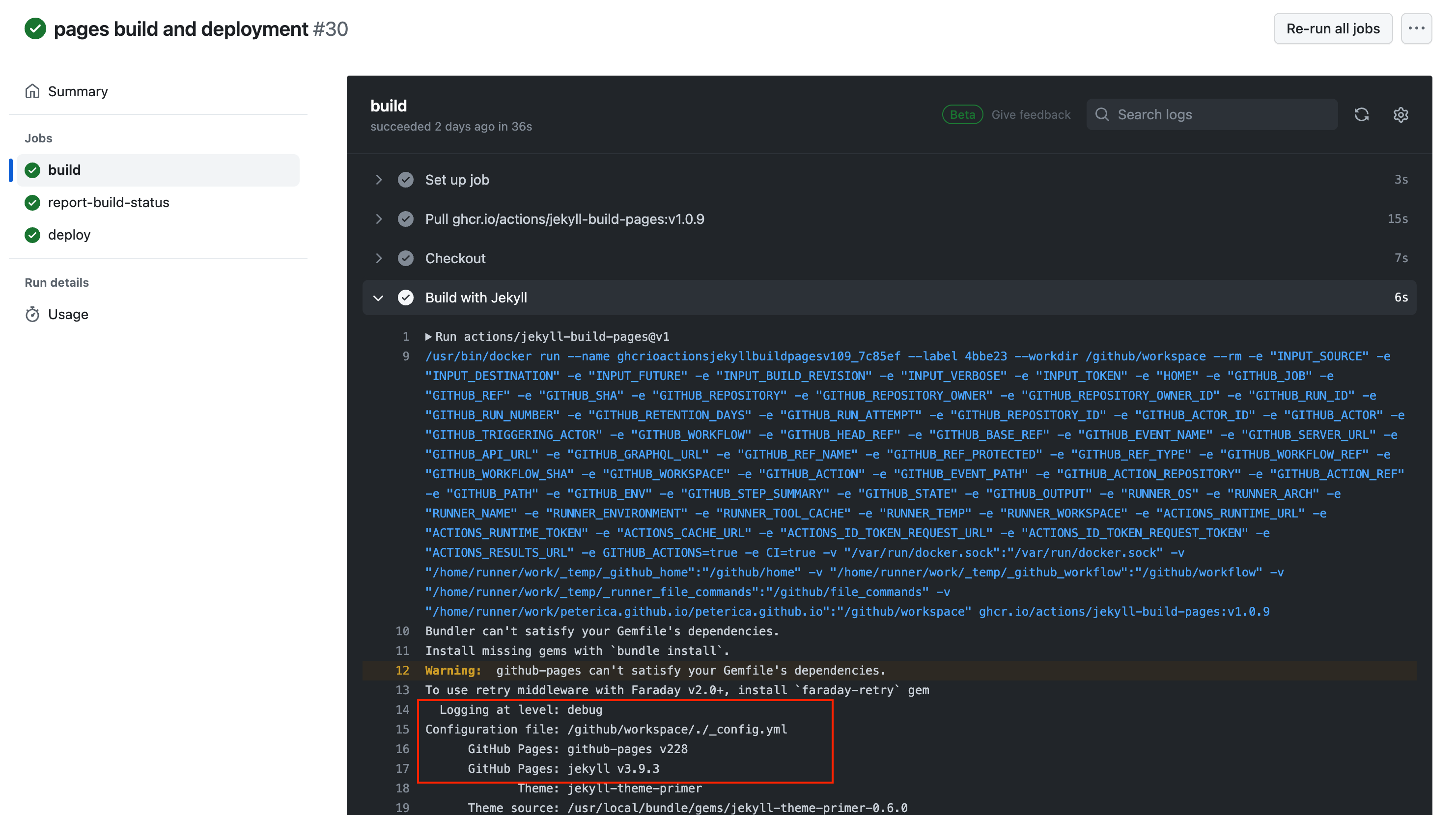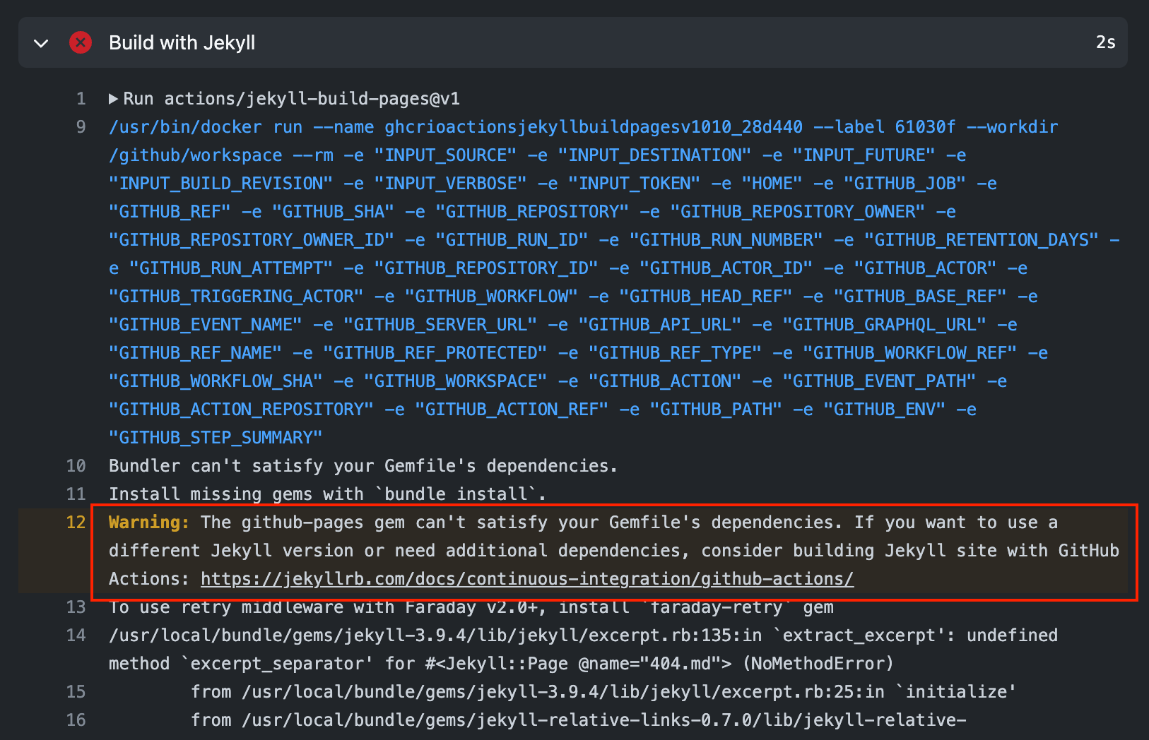 Error: Logging at level: debug Configuration file: /github/workspace/./_config.yml GitHub Pages: github-pages v229 GitHub Pages: jekyll v3.9.4 Theme
