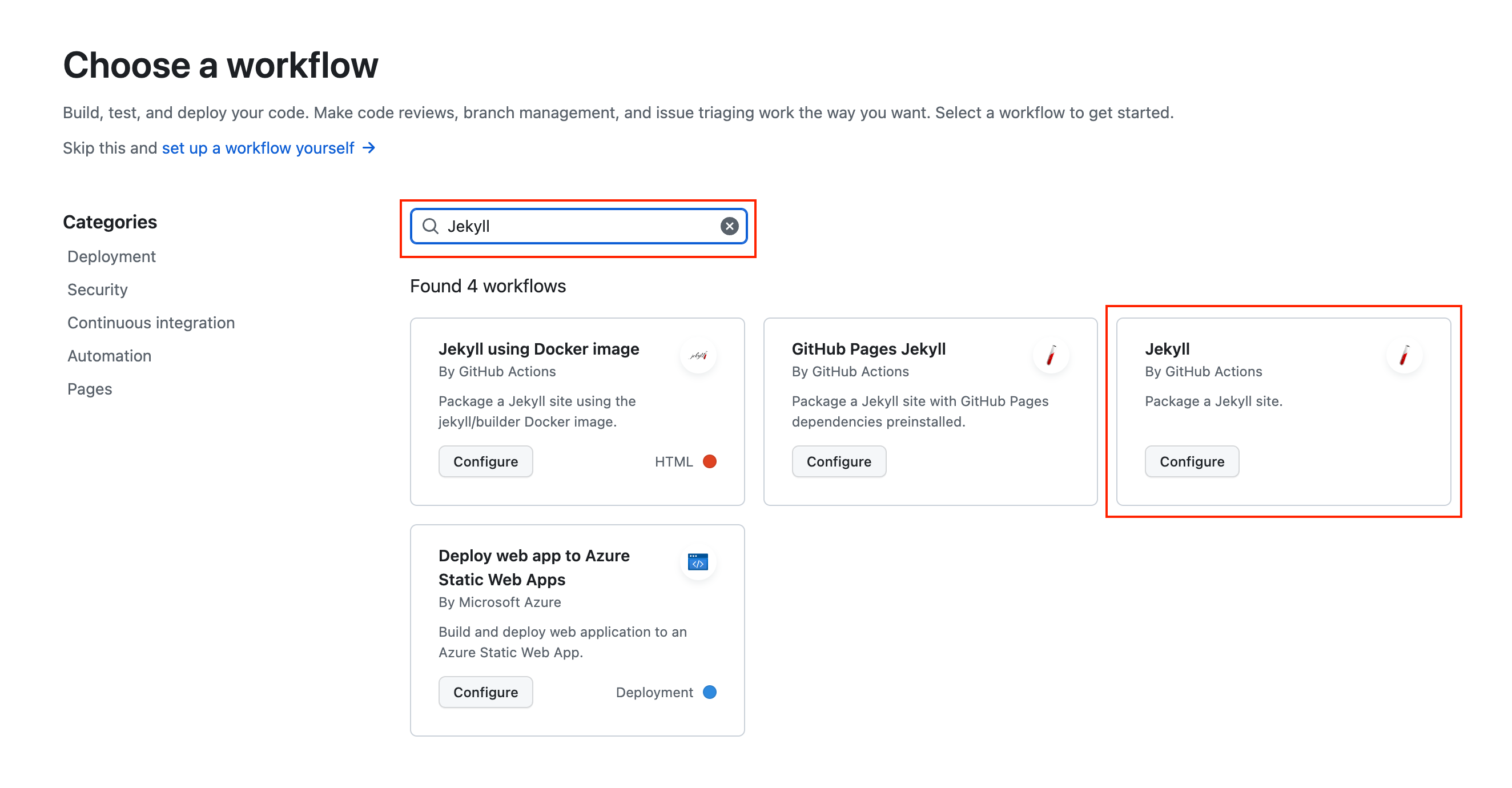 ㅇ Jekyll로 검색하여 Jekyll by GitHub Actions를 선택