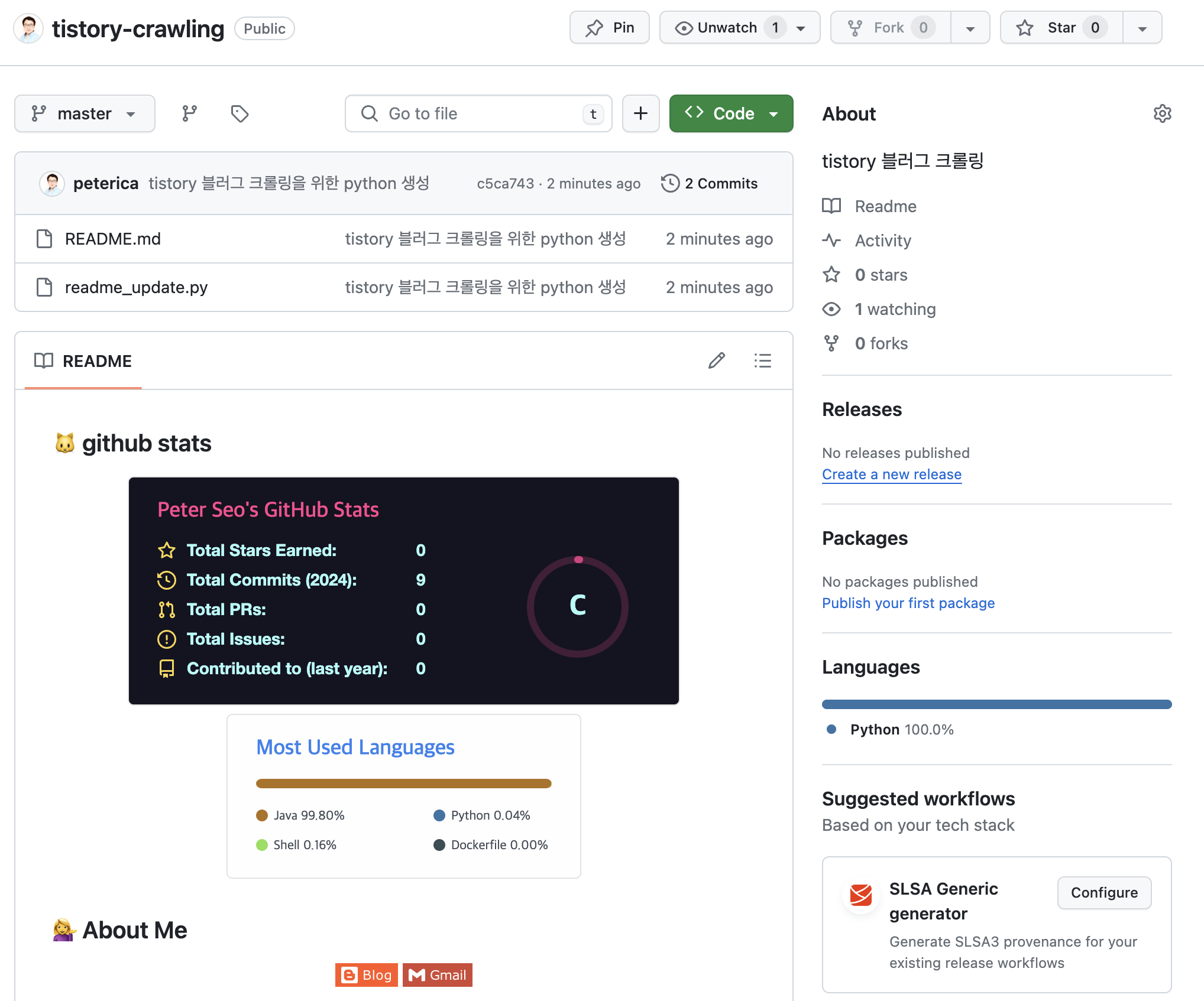 ㅇ tistory-crawling에 커밋을 하였다.
