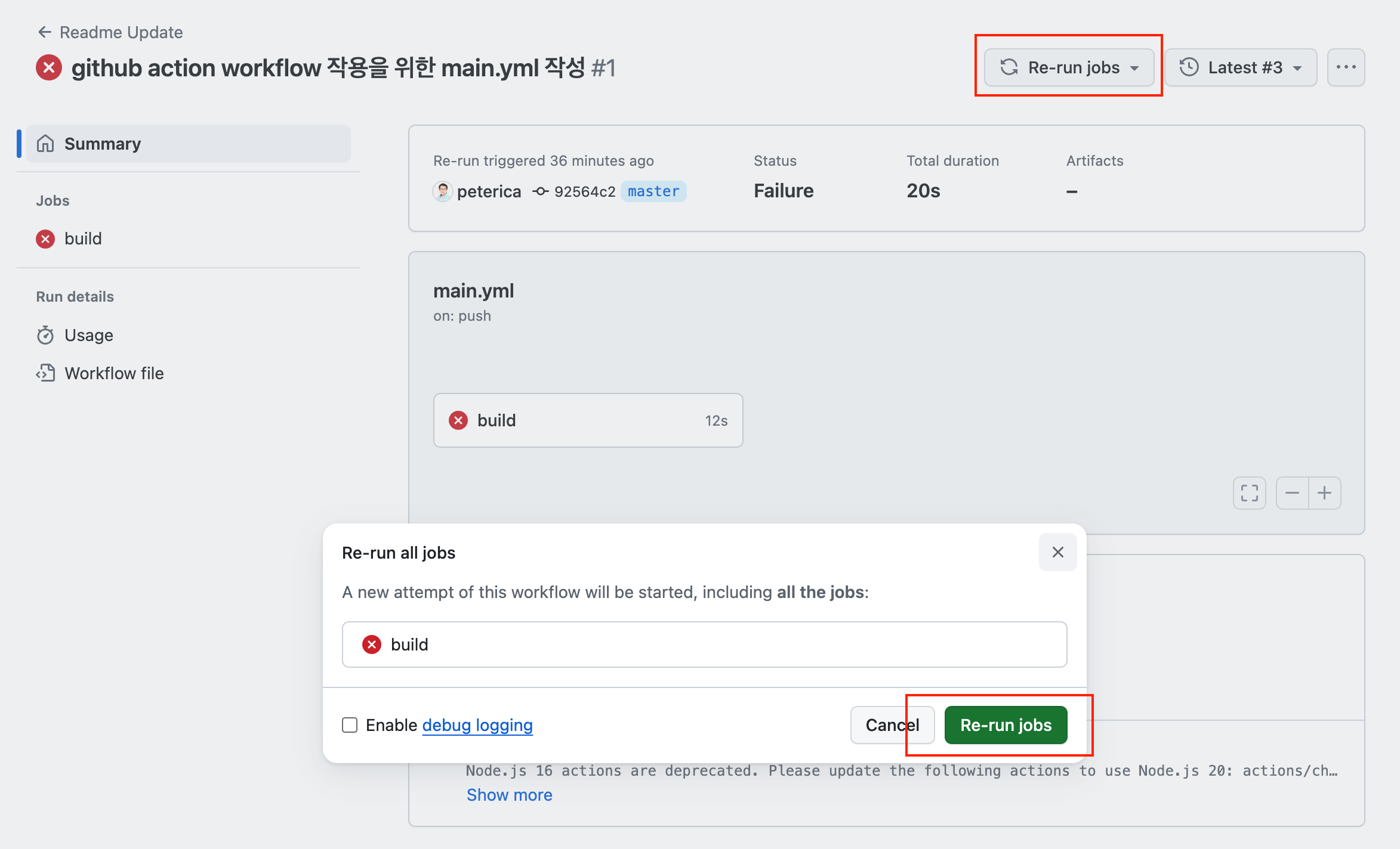 ㅇ workflow main.yml을 수정하였다.