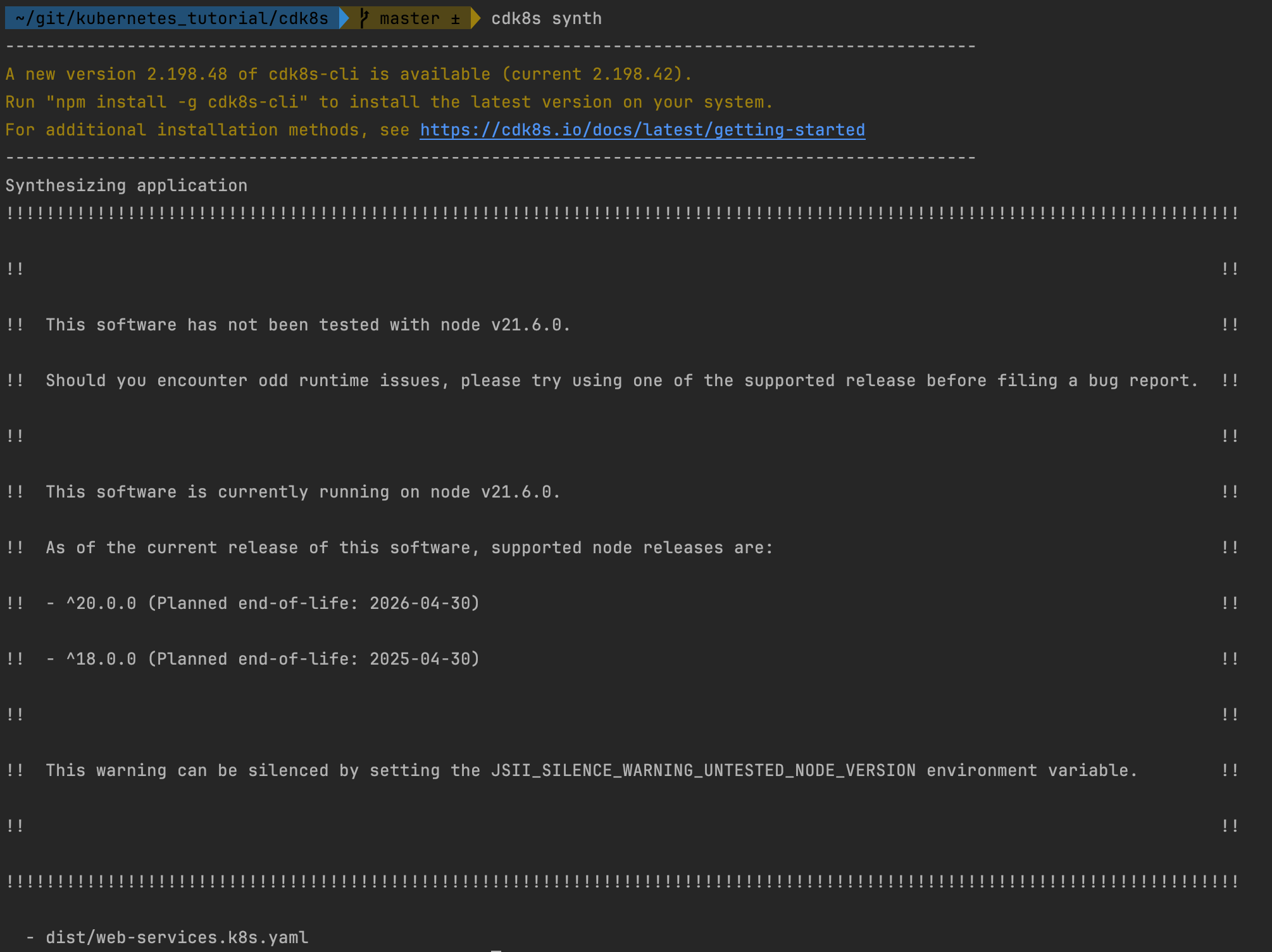 ㅇ [kubernetes] cdk8s란 무엇인가요?에서 cdk8s 개발환경을 설정하였고, 단일 클러스터의 yaml 생성과정을 알아보았다.
