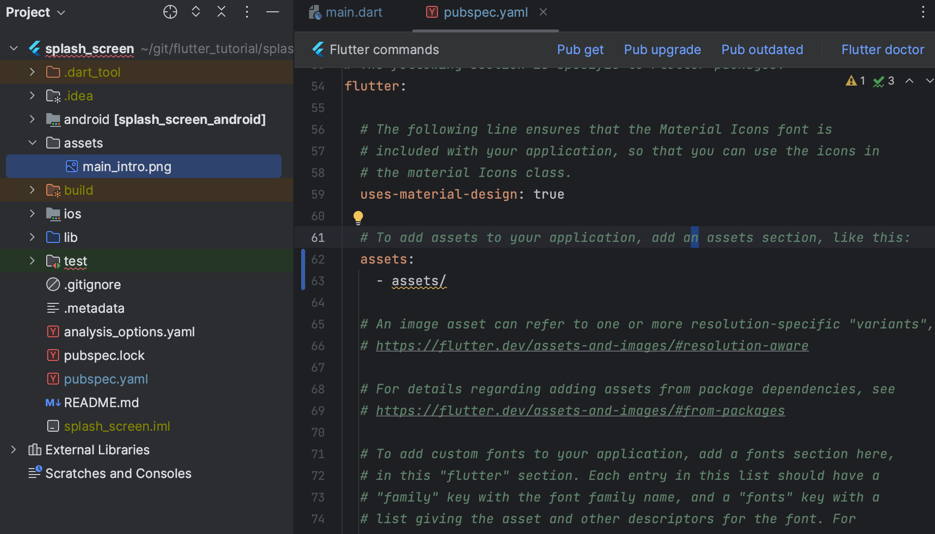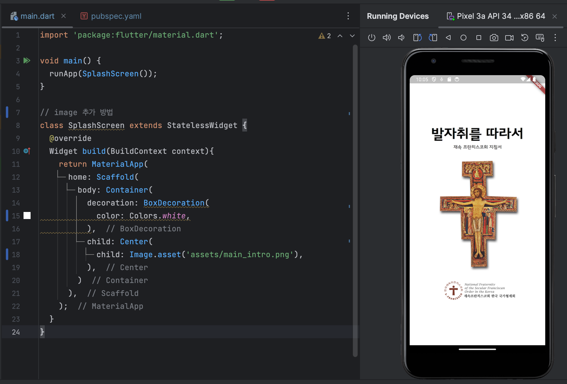 ㅇ pubspec.yaml에 프로젝트에 추가하고 싶은 폴더를 추가.