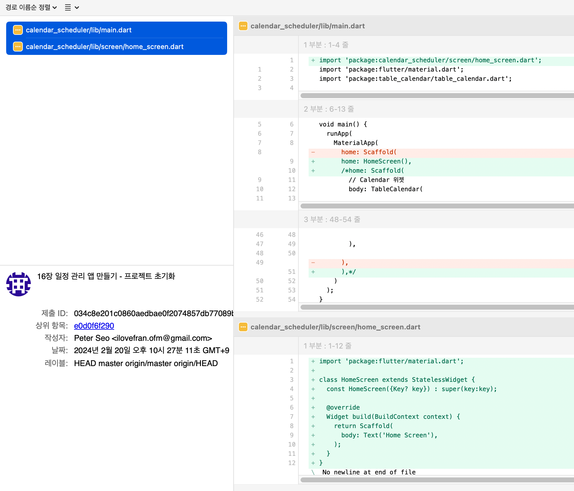 ㅇ 코드팩토리의 플러터 프로그래밍 책을 보며 실습 중 일정 관리 앱을 개발하는 과정을 정리하였다.