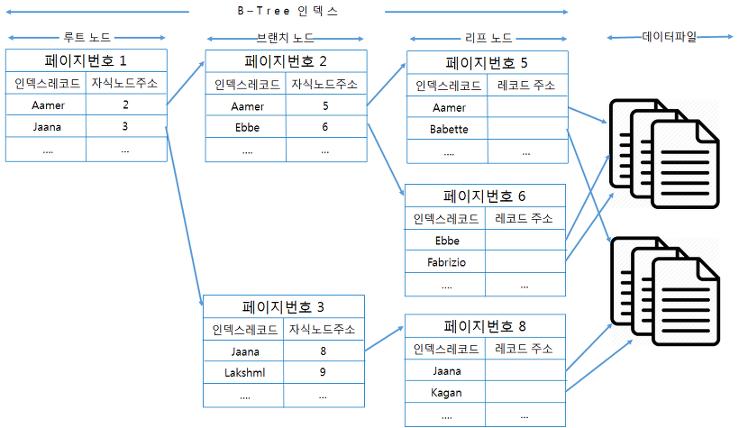 ㅇ 데이터를 검색할 때에 루트 -> 브랜치 -> 리프를 색인 후 실제 데이터 조회