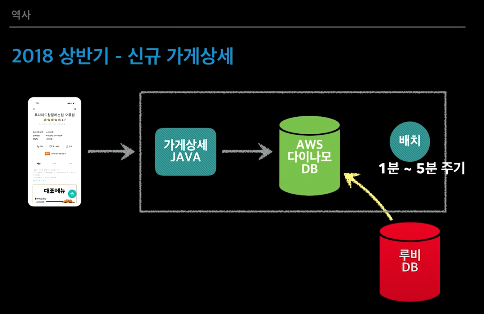 ㄴ루비DB는 Write, update 및 관계형 디비 비지니스 로직 수행(무거운 조인쿼리 구동)