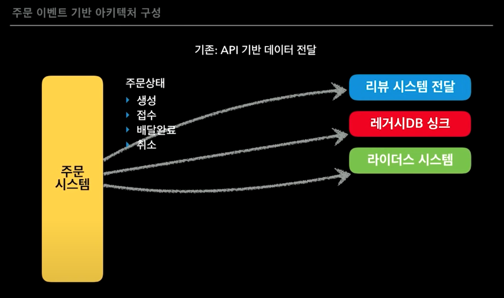 ㅇ 주문이 년간 8만건 정도이면 문제가 되지 않지만 사용자가 늘어나면 지연 및 부하로 인한 장애가 발생하게 된다.