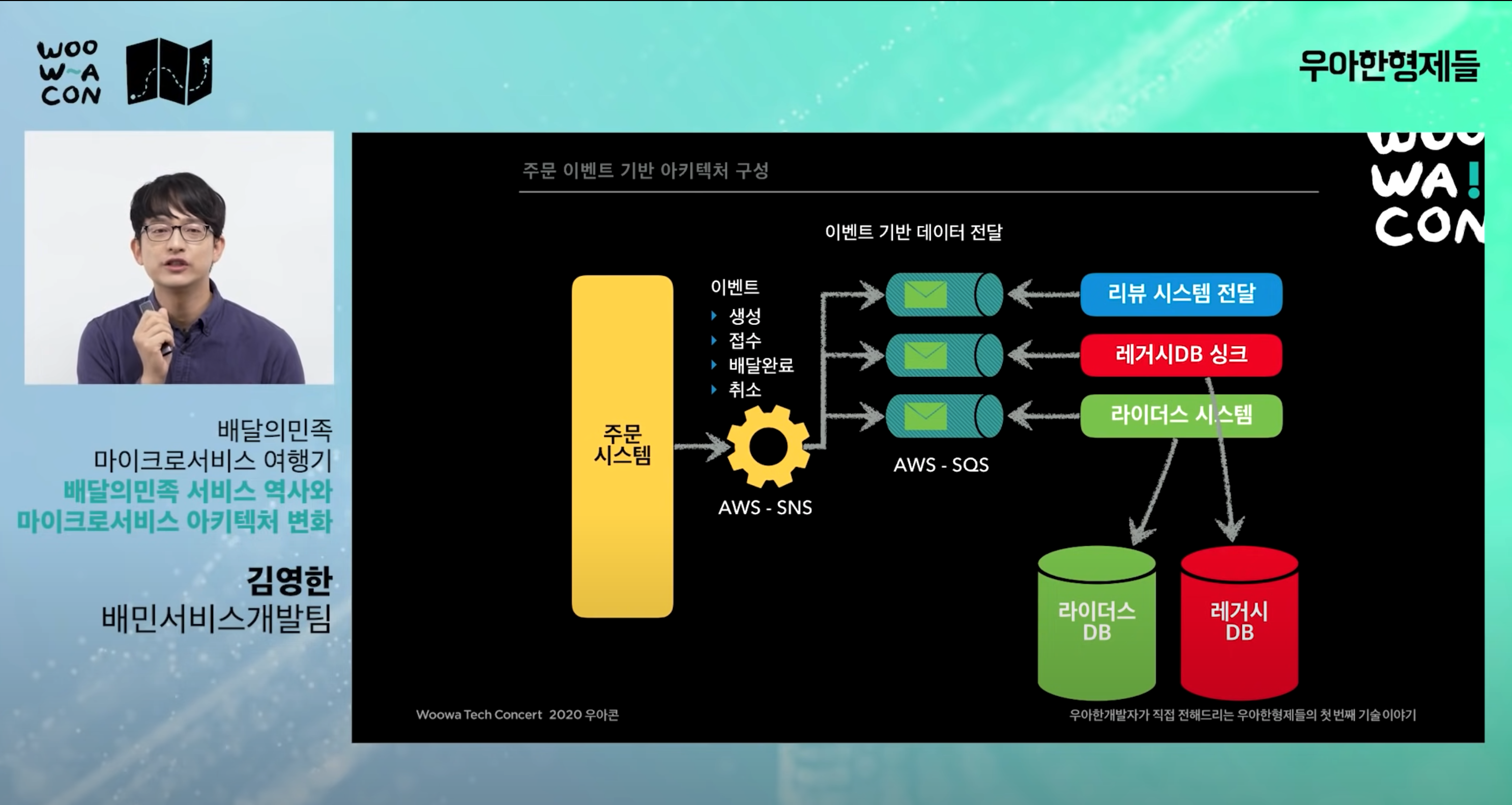 마이크로서비스의 패턴 중 CQRS에 관한 글을 작성하면서 [우아콘2020] 배달의민족 마이크로서비스 여행기 유튜브 동영상을 다시 보게 되었다. MSA에 대해 고민하면서 많이 공감이 되고 도움이 되는 동영상이다. 이번에 이 동영상을 다시 보면서 마이크로서비스를 구축하는 좋은 경험들을 글로 정리를 해 보았다.