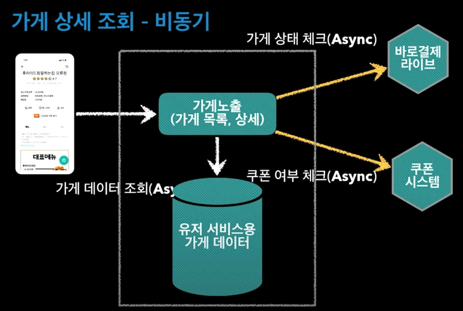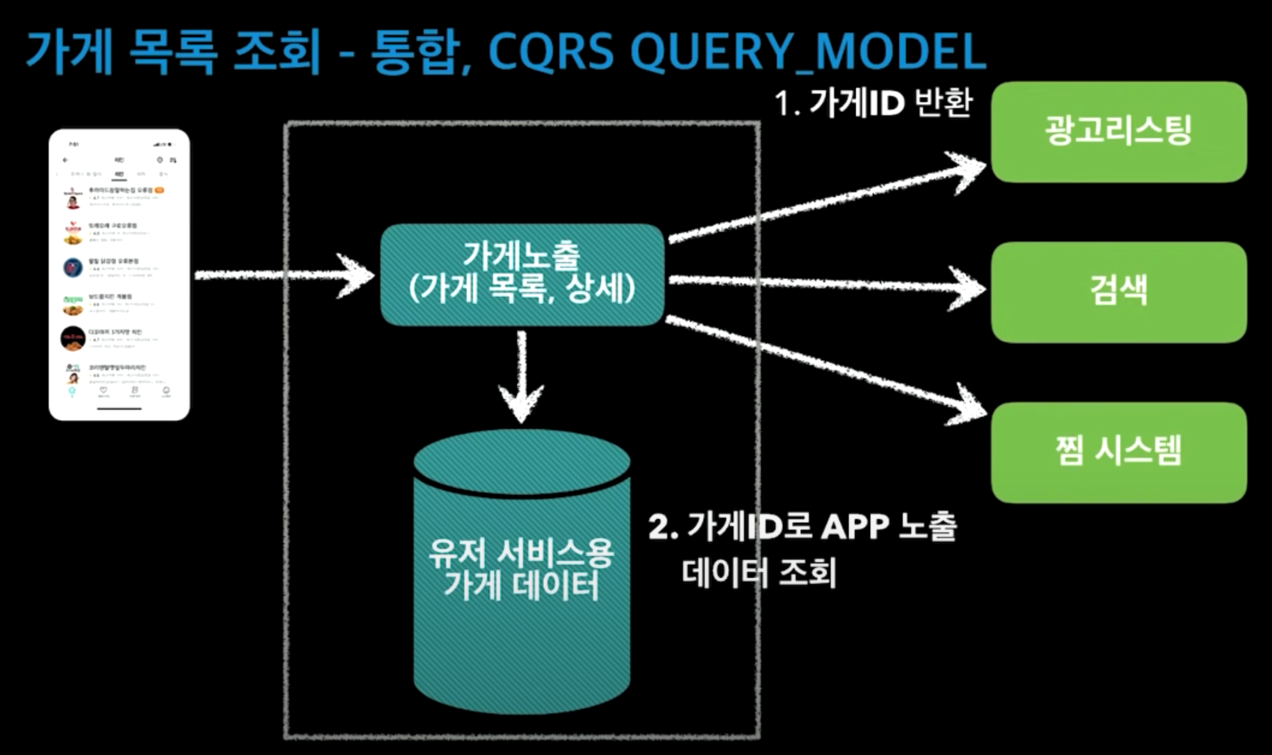 ㅇ 광고리스팅, 검색, 찜 시스템의 모듈들에서 가게ID만 받아 자체 DB에서 정보를 조회