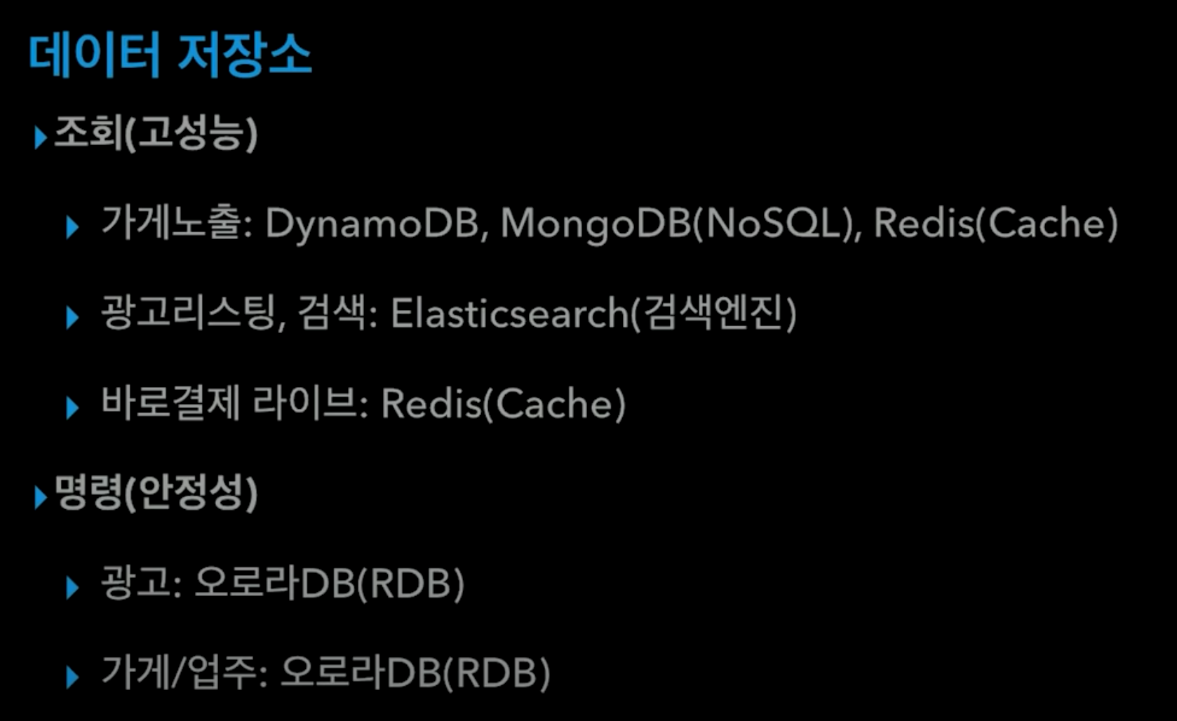 ㅇ 트래픽이 발생하여도 내부 DB에서 조회하여 뒷단의 메인 디비에는 영향이 전파되지 않음.