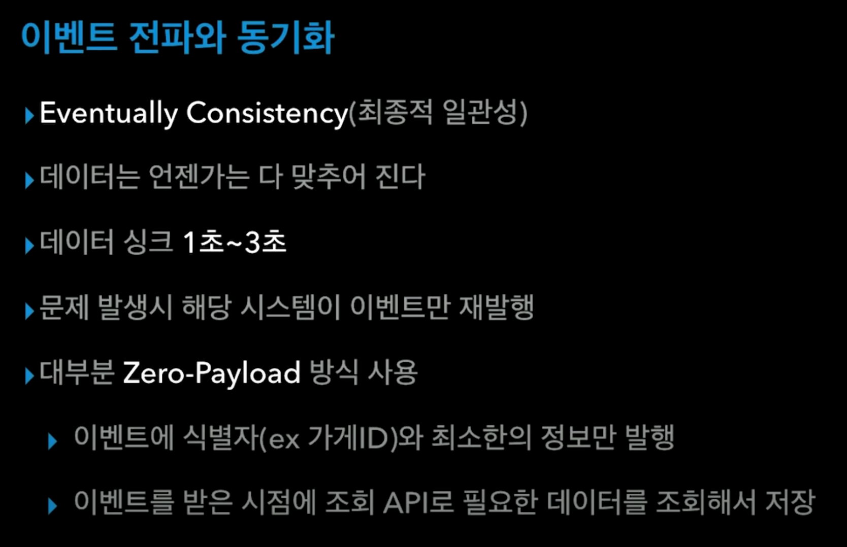 ㄴ 장애 시 데이터 싱크가 늦어져도 고객서비스는 가능