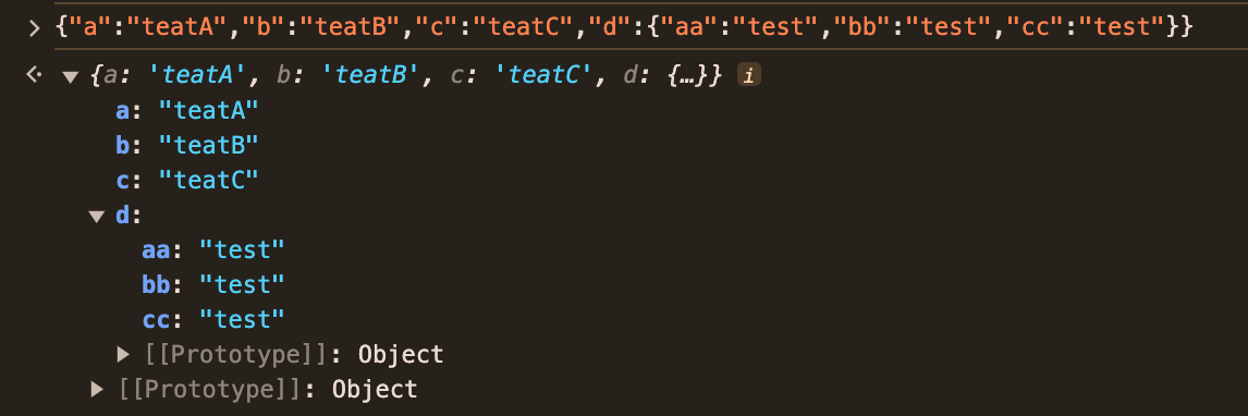 {"a":"teatA","b":"teatB","c":"teatC","d":{"aa":"test","bb":"test","cc":"test"}}