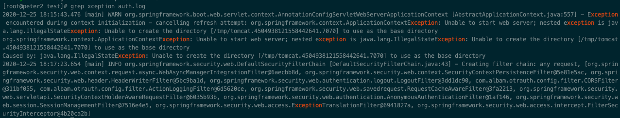 특정 에러가 있을 때에 Exception의 문자열에서 xception으로 검색한다. Exception, exception이 필터된다.