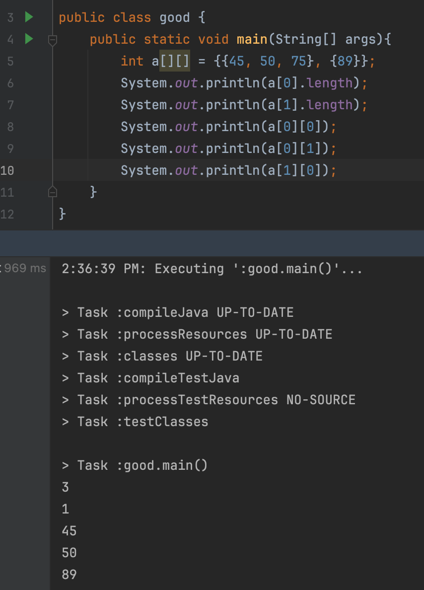 int a[][] = {{45, 50, 75}, {89}};