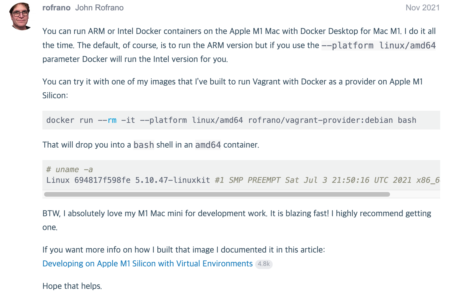 ㅇ Run x86 (Intel) and ARM based images on Apple Silicon (M1) Macs?