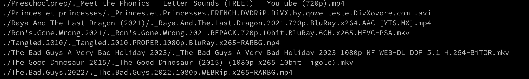 ㄴ 집에서 아이들 영화폴더를 관리하는데 불필요한 파일들이 '._*' 형태로 발생하여 일괄 삭제하였다.