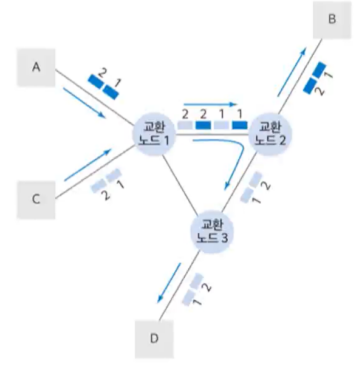 ㅇ 데이터그램 방식: 데이터를 몇 개의 패킷으로 쪼갠 후 각각의 패킷별로 독립적인 전달 경로를 선택하여 전송하는 방식