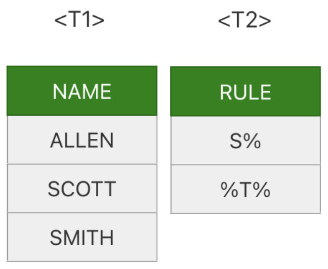 15. T1 테이블과 T2테이블을 참고하여 SQL 실행결과를 쓰시오.