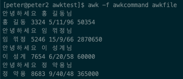 awk -f [awk 명령파일] [awk 명령을 적용할 텍스트 파일]